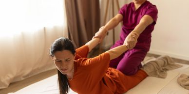 Thai massage is an ancient healing art that combines acupressure and assisted yoga stretches, to improve flexibility and relieve tension. Unlike a traditional massage where you lie on a bed, the client typically lies on a mat on the floor, fully clothed, and the therapist uses their hands, thumbs, elbows, and feet to guide the client through movements